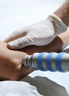 Atua por ondas mecânicas de pressão acústica, de curta duração direcionadas para o local a tratar, sendo uma técnica não invasiva. São geradas por um aparelho compressor e aplicadas por meio de um aplicador ou pistola